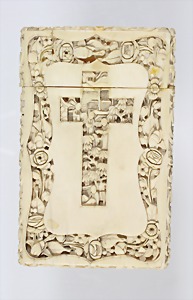 Elfenbeinschnitzerei (Etui), 2.Hälfte 19.Jhd., mit floralen Ornamenten reich verziert, beidseitig mit Asiatischen Motiven (mittig), vollplastisch ausgearbeitet, eine Seite mit Fehlstellen, leider zugeklebt ! Ca. 73,3 x 115,4 x 10,6 mm Für diesen Artikel ist ein Versand in nicht EU-Länder leider nicht möglich !