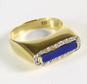 Lapis-Ring, GG 585/000 (neuwertig), 9 Diamanten ca. 0,16 ct w-si, RW ca. 54, total 5,6 g