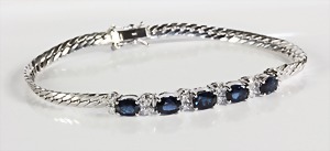 Armband, WG 585/000, 5 Saphire ca. 2,5 ct Oval (facettiert), 12 Diamanten ca. 0,22 ct tw-vsi, Kastenschloß mit 2 Sicherheitsachtern, L = 19,3 cm