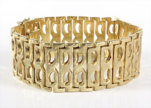 Armband, "VINTAGE" 1960/70er Jahre, GG 585/000, strukturierte Armbandglieder in Achterform, untergebautes Kastenschloss mit 2 Sicherheitsachten, B = 25,1 mm, L = 19,0 cm, total 41,3 g