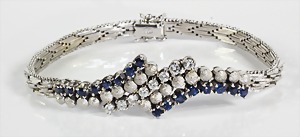 Armband, WG 585/000, 8 Brillanten ca. 0,36 ct w-si, 16 Saphire (facettiert), untergebautes Kastenschloss mit zwei Sicherheitsachten, L = 18,3 cm, total 24,2 g