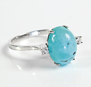 Ring, WG 750/000, Türkiscabochon, 2 Brillanten ca. 0,09 ct w-si, RW ca. 58,5