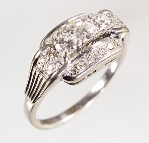 Ring, WG 585/000, 3 Altschliff-Diamanten ca. 0,62 ct weiß, 24 St. 8-Kant-Diamanten 0,30 ct weiß, RW ca. 61