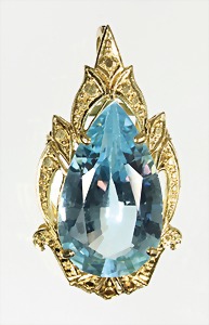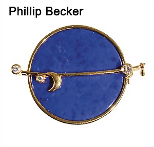 Brosche, "PHILIP BECKER" Pforzheim, GG 585/000 feinvergoldet, Lapisscheibe, 3 Brillanten ca. 0,10 ct tw-vsi/si, D = 27 mm, kl. Tropfen beweglich