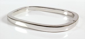Armband "VINTAGE" 1970er Jahre, WG 750/000, rechteckig gearbeiteter Reif mit weichen Ecken, integriertestes Kastenschloss mit Schnepper, Scharnierbewegung. B = 5,0 mm, innen: 61,0 x 50,3 mm, total ca. 21,8 g