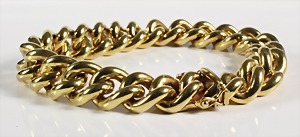 Armband "KLASSIKER", GG 585/000, kräftiges Panzerband mit weichen, volluminösen Gliedern, untergebautes Kastenschloss mit 2 Sicherheitsachten. Das Armband liegt geschmeidig am Arm, B = 11,5 mm, L = ca. 20,0 cm, total ca. 92,7 g
