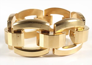 Armband, Mitte 20.Jhd., GG 750/000, polierte u. mattierte Kreissegmente bilden das dekorative Armband, untergebautes Kastenschloss mit 2 Sicherheitsachten, B = 59,5 mm, L = 19,8 cm, total 171,8 g !! Das Band ist geschmeidig gearbeitet und damit sehr angenehm zu Tragen, ein echter Hingucker !