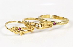 Lot 3 Ringe: 1 Ring (schmal), GG 585/000, Rubin, RW ca. 53; 1 Ring, GG 750/000, 1 Brillant weiß, RW ca. 51,5; 1 Ring, 1 Rubin, RW ca. 51