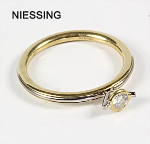 Ring "NIESSING", GG/WG 585, 1 Brillant ca. 0,13 ct tw if (lupenrein), RW ca. 53,5