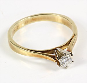 Ring, GG 585/000, 1 Brillant ca. 0,25 ct tw-vsi, RW ca. 53,50