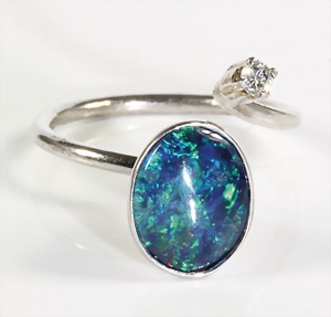 Ring "VINTAGE" 1970er Jahre, WG 585/000, 1 Opaltriplette ca. 10 x 7,5mm, 1 Brillant ca. 0,035 ct w-si, RW ca. 50,0