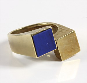 Ring "VINTAGE" 1970er Jahre, GG 585/000, Lapis-Platte, RW ca. 56