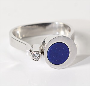 Ring aus den 1970er Jahren "VINTAGE", WG 585/000, plan eingelassener Lapis, 1 Brillant ca. 0,05 ct tw-vsi/si, RW ca. 51,5 (Ringschiene leicht U-förmig !)