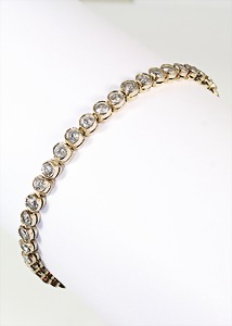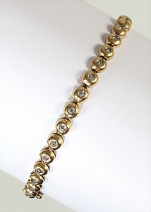 "TENNIS-ARMBAND", GG 585/000, 37 Brillanten ca. 0,35 ct w-si, integriertes Kastenschloss mit Sicherheitsacht, L = 19,2 cm