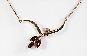 Collier, GG 333/000, 3 Granate, 1 weißer Stein, L = 40,5 cm