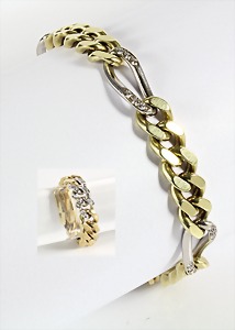 Lot: Armband und Ring "KLASSIKER", GG/WG 585/000, 24 Brillanten ca. 0,25 ct tw-vsi/si, integriertes Kastenschloss mit 2 Sicherheitsachten, B = 8,0 mm, L = ca. 19,0 cm; Ring (beweglich), RW ca. 56, 6 Brillanten ca. 0,04 ct w-si, total 38,1 g