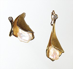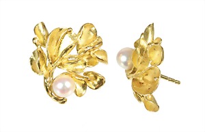 1 Paar Ohrstecker "BLÄTTER", GG 750/000, Akoja-Pele D = 5,3 mm, ca. 16,5 x 21,0 mm, ohne Ohrmechanik !