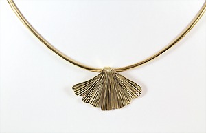 Reif mit Anhänger "GINKGO", GG 585/000, Collier L = 42,0 cm; Anhänger ca. 41,5 x 26,5 mm, total 23,4 g