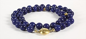 Lapis-Kette, GG 585/000, Schließe beidseitig mit Brillanten ausgefasst, 14 St. ca 0,08 ct weiß, Lapiskugeln D = 9,0 - 9,2 mm, L = ca. 51,0 cm (mit Zertifikat !)