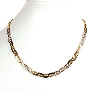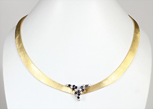 Collier, GG/WG 750/000, 9 Brillanten ca. 0,60ct tw-vsi, 11 Saphire ca. 1,2 ct (facettiert), alle Steine weiß gefasst, untergebautes Kastenschloss mit Sicherheitsacht, L = 44,0 -45,0 cm, B = 7,0 mm, total 84,8 g