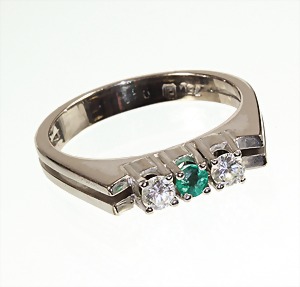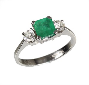 Ring, schöner "KLASSIKER", WG 750/00, zentraler Smaragd im Carreé-Schliff ca. 0,95 ct, 2 Brillanten ca. 0,28 ct tw-if (lupenrein), RW ca. 56