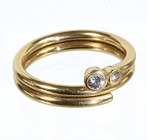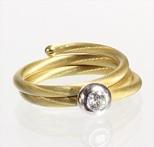 Designer-Ring, GG/WG 750/000, 1 Brillant ca. 0,25 ct tw/w-vsi/si, Ring aus federnden Spiraldrähten gefertigt, RW ca. 56