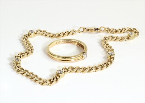 Lot: Armband und Ring "KLASSIKER", GG 585/000, Armband 5 Brillanten ca. 0,5 ct tw-p, L = ca. 21,8 cm (Karabiner sollte die nächste Zeit erneuert werden !); Ring, 1 Brillant ca. 0,15 ct w-si, RW ca. 57,5