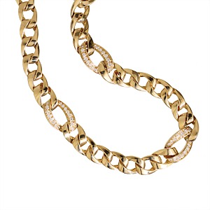 Dekoratives Collier, GG/WG 750/000, 90 St. 8/8-Diamanten ca. 1,80 ct weiß, integriertes Kastenschloss mit 2 Sicherheitsachter, B = ca. 6,5-6,8 mm, L = 43,5 cm, total 32,4 g