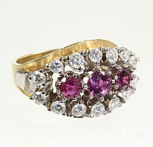 Lot 3 Ringe: 1 Ring (schmal), GG 585/000, Rubin, RW ca. 53; 1 Ring, GG 750/000, 1 Brillant weiß, RW ca. 51,5; 1 Ring, 1 Rubin, RW ca. 51