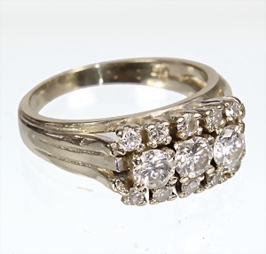 Ring, WG 585/000, 3 zentrale Brillanten ca. 0,75 ct w-p, seitlich 10 weitere Brillanten ca. 0,50 ct w-si/p, RW ca. 52