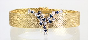 Armband, GG/WG 750/000, 10 Brillanten ca. 0,65ct tw-vsi, 10 Saphire ca. 1,4 ct (facettiert), alle Steine weiß gefasst, untergebautes Kastenschloss mit Sicherheitsacht, L = 18,5 cm, B = 12,2 mm, total 46,4 g