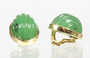 1 Paar Ohrclips 1960/70 Jahre, GG 750/000, gravierte "RUSSISCHE-JADE" ca. 15,0 x 20,0 mm
