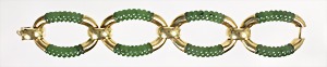 Armband, GG 750/000, 4 ovale Elemente, gravierte "RUSSISCHE-JADE, Klappschließe, B = ca. 32,0 mm, Länge ca. 18,5-19,0 cm, total 88,7 g