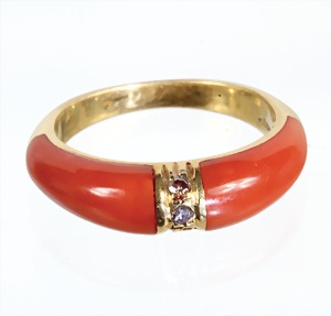 Ring, GG 750/000, 3 Stck. 8/8-kant Diamanten, seitlich eingelegte Koralle, RW ca. 49Für diesen Artikel ist ein Versand in nicht EU-Länder leider nicht möglich ! No shipping outside of the EU !