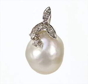 Anhänger mit Südsee-Perle, WG 585/000, 2 Brillanten 0,06 ct w-p, 3 St. 8/8-kant Diamanten 0,04 ct w-p, H = 23,0 mm, (WEMPE Zertifikat !)