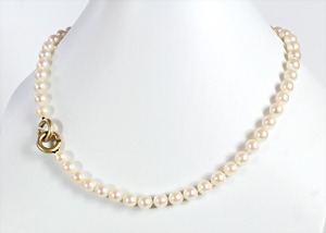Perlenkette, Schließe GG 750/00, Akoja-Perlen D = 7-7,5 mm, L = 44,5 cm, guter Lüster !