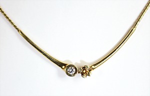 Collier, GG 585/000, 1 Brillant ca. 0,09 ct tw-vsi, 1 Brillant ca. 0,09 ct (cognacfarben), kl. Kastenschloss mit Sicherheitsacht, L = 40,5 cm