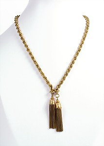 dekorative Kordelkette mit zwei Quasten, GG 750/000, Kette D = 5,5 mm, L = 45,5 cm total 35,5 g, schwer gearbeitet !