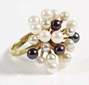 Ring, GG 585/000, 23 Akoja-Perlen (multi colour) D = 3,5 - 4,5 mm, RW ca. 51,5