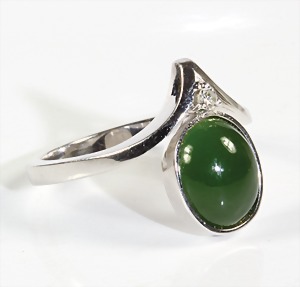 Ring aus den 1970er Jahren "VINTAGE", WG 585/000, Jadecabochon, 1 Diamant ca. 0,03 ct weiß, RW ca. 56,5