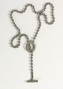 Kette, "YVES SAINT LAURENT", sig.: YSL, Metall: weißfarben, Strassbesatz (weiß), Knebel-Schließe (ausgefasst), L = ca. 71,0 cm