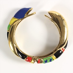 Armreif-Spange "SERPENTINE" 1980er Jahre, NIKI DE SAINT PHALLE, goldfarben, farbiger Emaillelack (dezente Abplatzer), ca. 49 x 45 mm, Spange mit Federmechanismus, orig. Schatulle (ohne Parfumflacon)