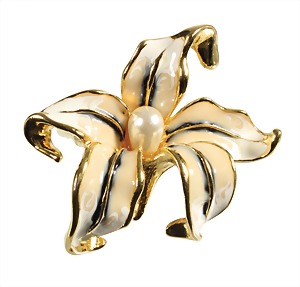 Ring "BLÜTE" mit Kunstperle von "KENNETH J. LANE" (USA), signiert, KJL, goldfarben, Emaillack, Ringkopf ca. 42,8 x 32,0 mm, RW ca. 54,5