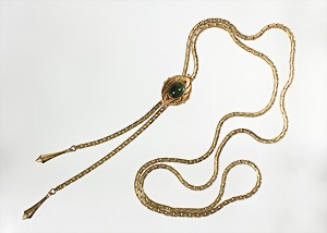 Kette mit Kettenschieber von "SARAH COVENTRY" USA, signiert: "Sarah", goldfarben, grüner Cabochon, L = bis 70,0 cm