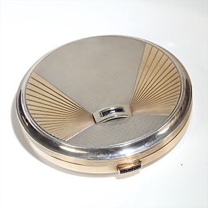 Puderdose um 1940/50, Silber 925/000, gepunzt EGB, Deckel und Seiten teilvergoldet, je 3 synth. Saphire im Drücker und Deckel, hochwertig verarbeitet, D = 77,5 mm H = 14,8 mm, total 94,6 g