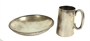 Lot: Schale, Silber 830/000, sig.: HW o. WH, kordierter Rand, D = 14,0 cm; Becher, Silber 800/000, H = 7,8 cm, alles total 232,5 g
