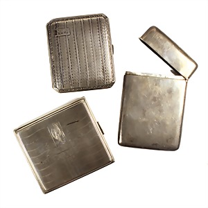 Lot: 2 Zigarettenetuis, 1 Etui (8-Eck), Silber 800/000 sig.: K&K, ca. 80 x 67 x 12,7 mm; 1 Etui, Silber, 77 x 85 x 15,5 mm; 1 Etui, wohl für Zigarillo oder Visitenkarten, Sterling Silber, sig.: Birmingham 1923/24 BROS A LTD (Adie Brother), Scharnier auf der Schmalseite, ca. 68,5 x 99 x 9,5 mm, glattes schmeichelndes Gehäuse, alle total 215,6 g