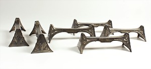 6 Messerbänke, "JUGENDSTIL" um 1900, Silber (geprüft) gepunzt 12 144 (Seriennr. ?), L = 90,0 mm