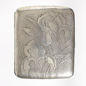 Taschen-Zigarettenetui Frankreich ?, "JUGENDSTIL" um 1900, Silber, stilisierte Lilien, feine Oberflächenstruktur, innen vergoldet, u. graviert, Etui gebogen gearbeitet, ca. 85,8 x 172,0 x 17,5 mm