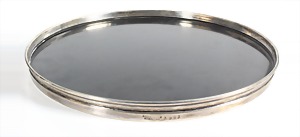 Kleines Tablett, "ART-DECO" 1940er Jahre, Silber (Sterling) , sig. REED AND BARTON X 583, Boden schwarzer Kunststoff, D = 19,5 cm